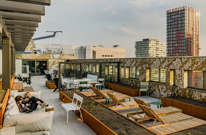 Een dak met diverse functies: groen daken, duurzame energie en een ontmoetingsplek