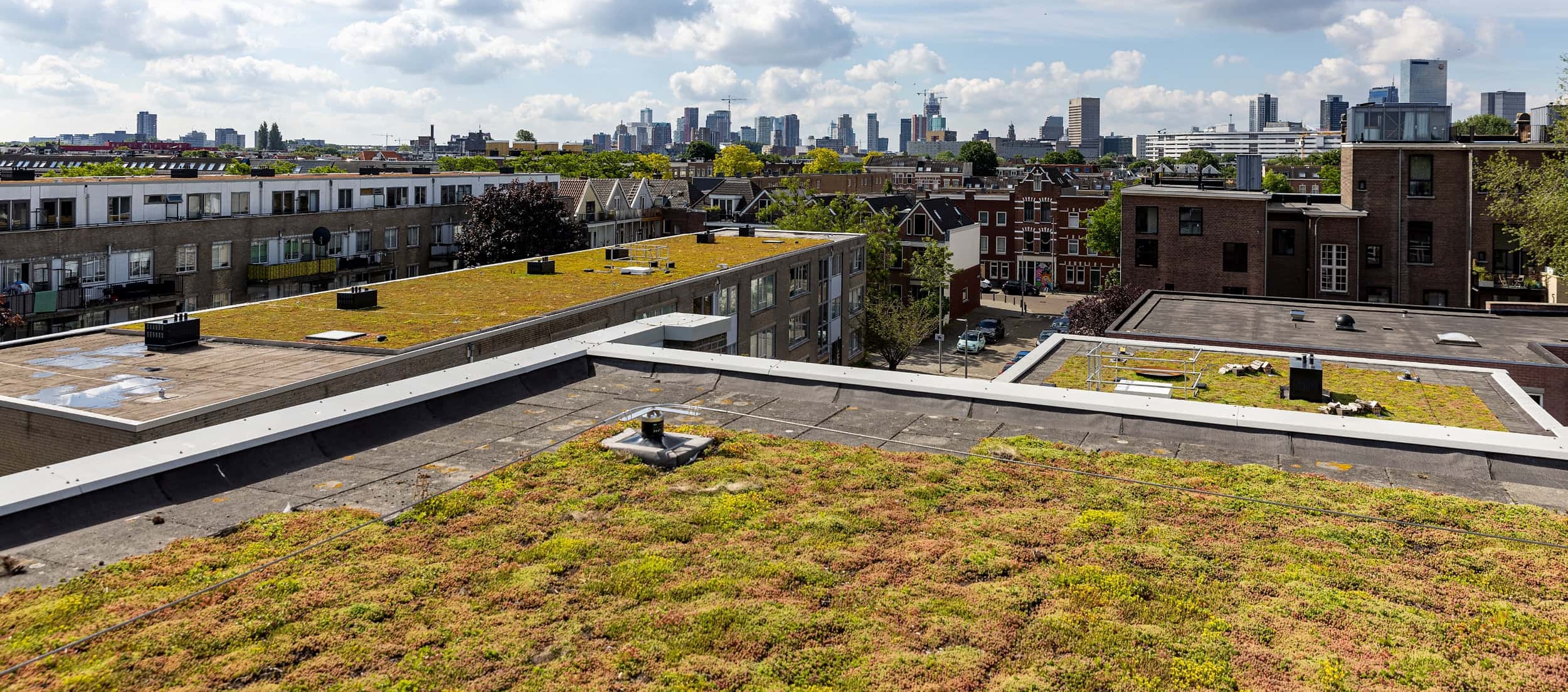 Daken als antwoord op de grote stedelijke uitdagingen zoals klimaatadaptatie, hittestress, biodiversiteit en energie.